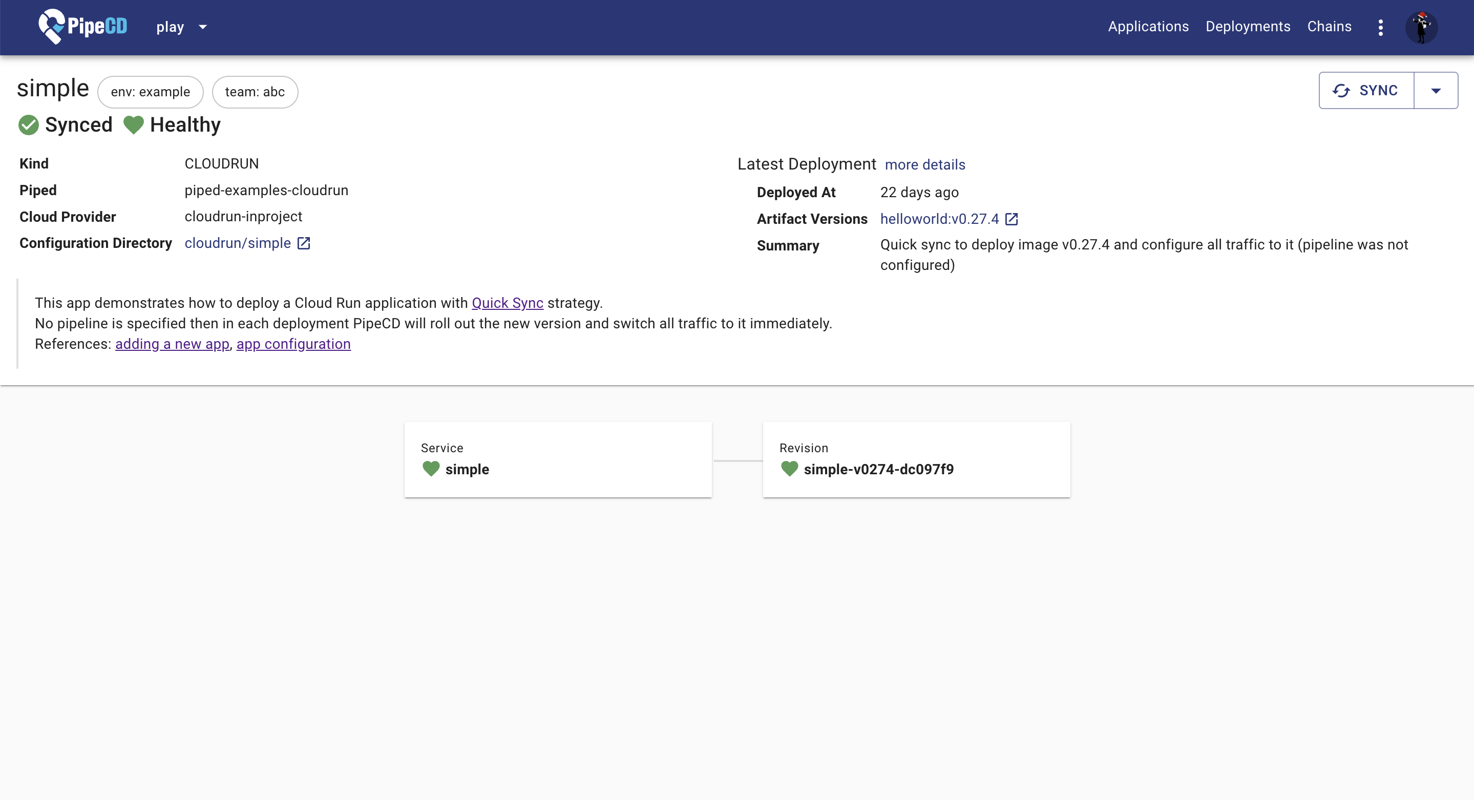 For all users who want to have a glance at how and what PipeCD can give you in real-life usecases, this PipeCD play environment is for you. We have a blog about that live demo, feel free to check it from here.