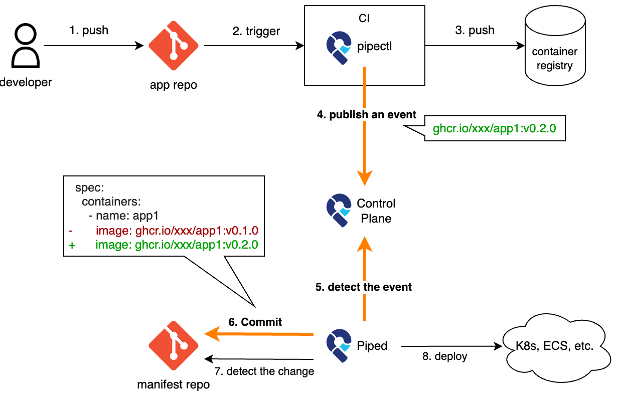 4. Publish an event in CI to pass the new image URI to PipeCD