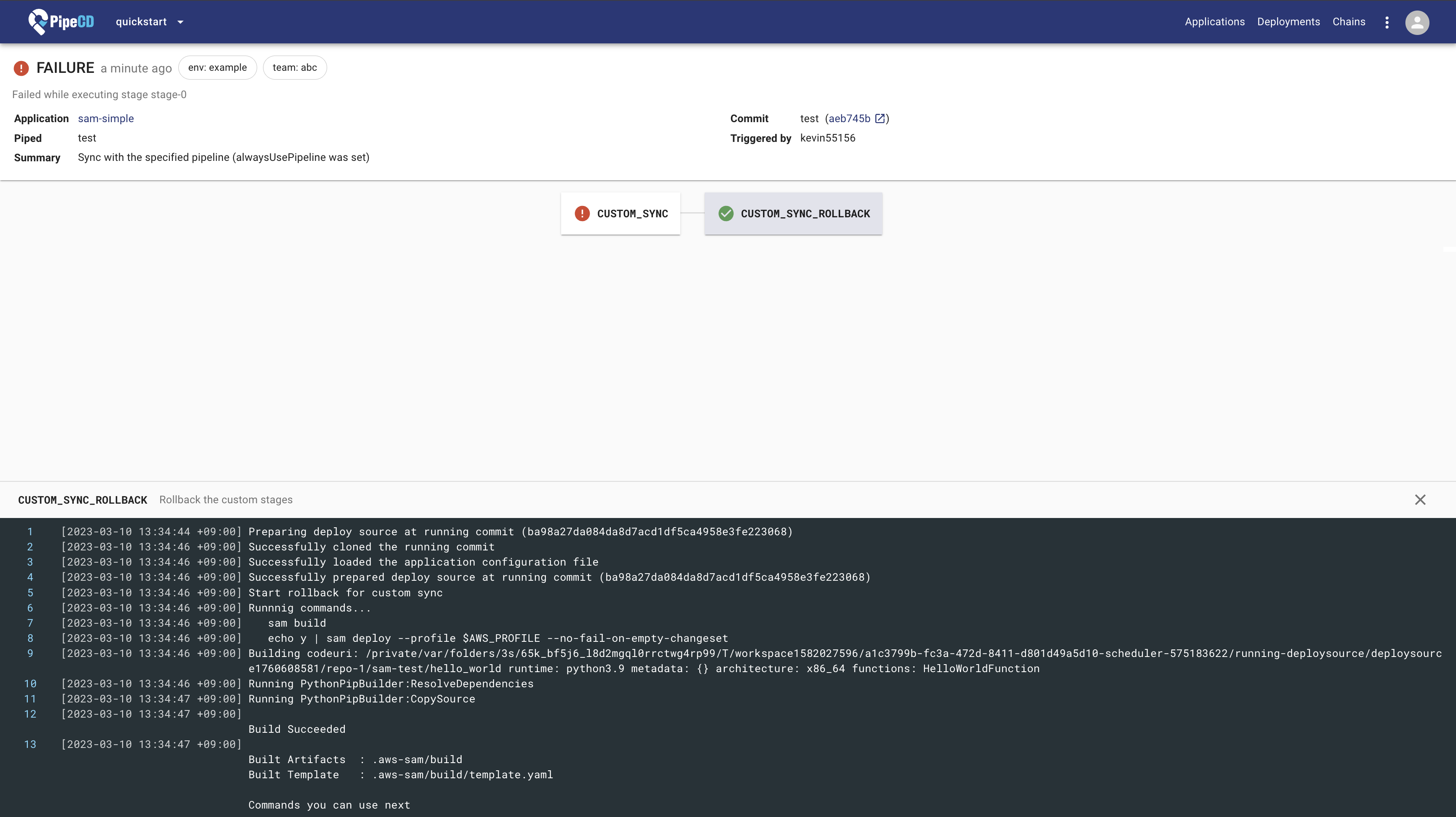 When the rolling back process is triggered in the pipeline including CUSTOM_SYNC, CUSTOM_SYNC_ROLLBACK stage will be added to the deployment pipeline.